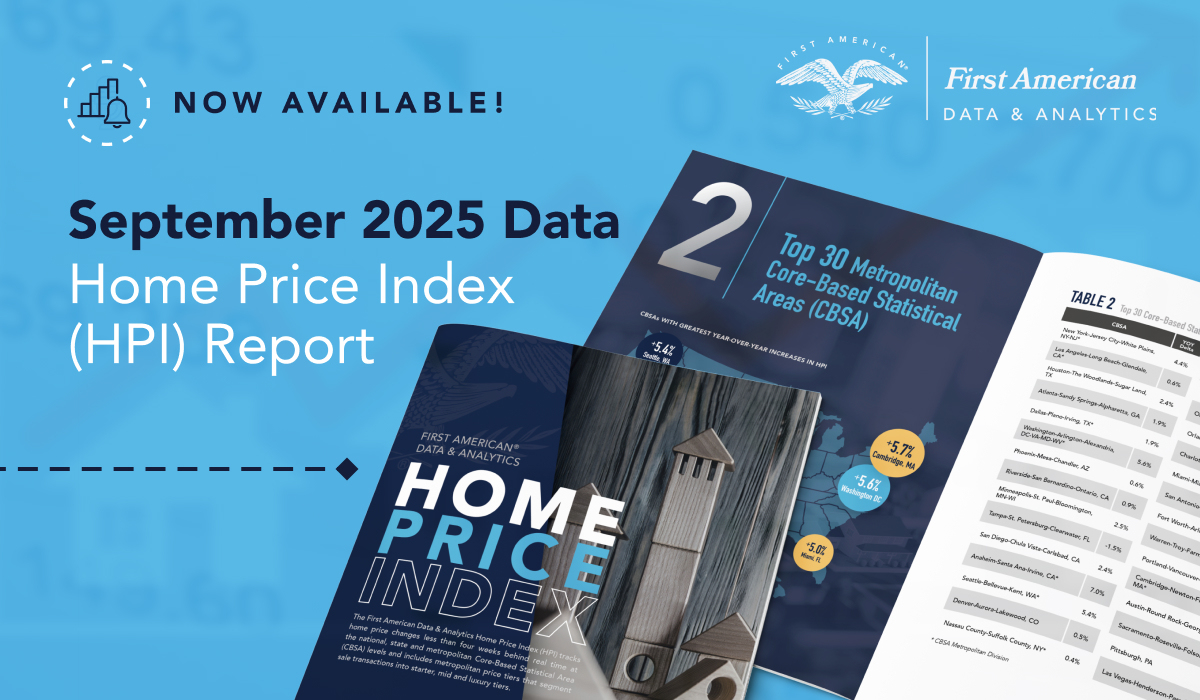 SANTA ANA, Calif., Oct. 16, 2025 – First American Data & Analytics, a leading national provider of property-centric information, risk management and valuation solutions and a division of First American Financial Corporation (NYSE: FAF), today released its September 2025 Home Price Index (HPI) report. The report tracks home price changes less than four weeks behind real time at the national, state and metropolitan (Core-Based Statistical Area) levels and includes metropolitan price tiers […]